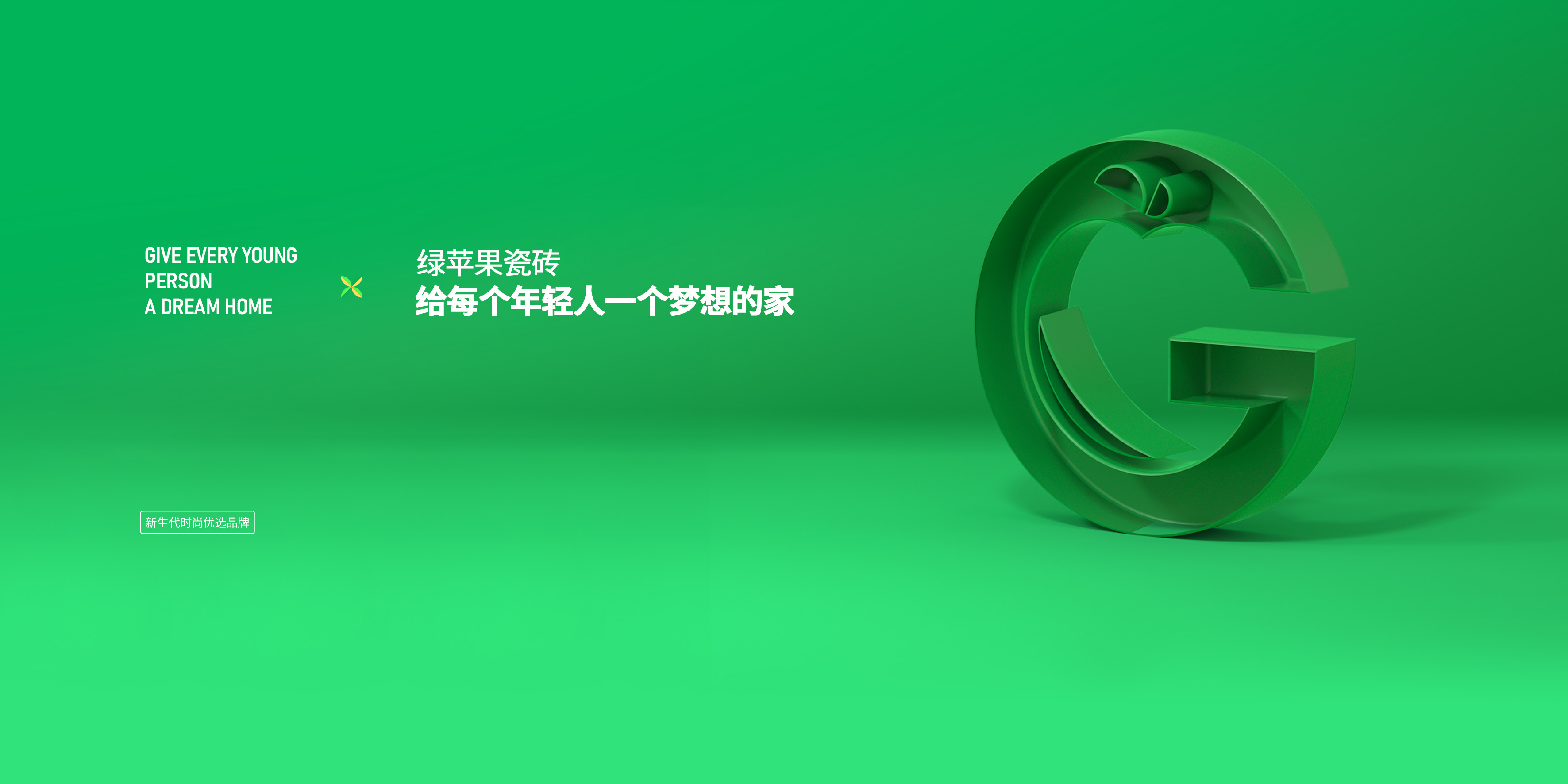 新生代品牌瓷磚綠蘋果瓷磚GREEN APPLE 始于2010年,糅合潮流元素與多變格調,優選品質好物,用顛覆創新的思維去組合夢想空間,打造時尚、激情、富有情感互動的理想家,其中張揚著年輕、奮斗和快樂的DNA。產品集合國際潮流色彩,以“給每個年輕人一個夢想的家”為品牌使命,傳遞正青春的簡單理念和細膩入微的質感精神。